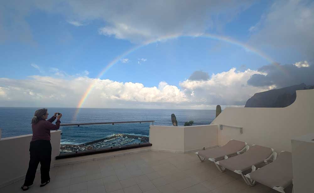 Den letzten Abend auf der Insel verbrachten wir im Royal Sun Resort in Los Gigantes. Geräumig und sauber, aber mit 90er Jahre Stil etwas in die Jahre gekommen. Es stürmte und regnete und so blieben wir im Haus und genossen das Buffet, das echt gut war.
