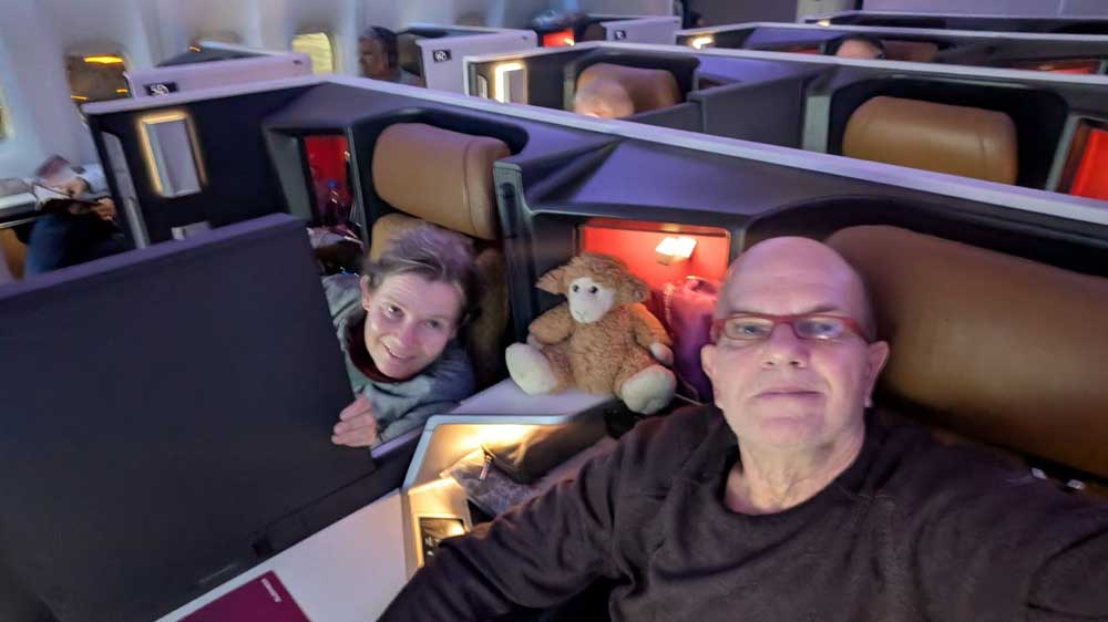 Ein echter Winter soll kommen. Wir hauen ab auf die andere Seite der Welt. Air India schien die beste Option. Mit Umstieg in Mumbay bzw. Delhi sind die Sitzetappen unter 8 Stunden. Und gut 1.000.- Euro bis Singapur in Premium Economie klingen auch gut. Da kann man sich auch mal die kurz vor Abflug angebotenen 300 Euro Aufpreis gönnen, um mal Business Class zu fliegen 😉