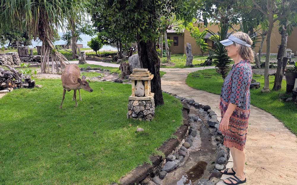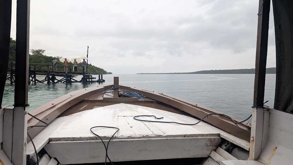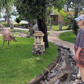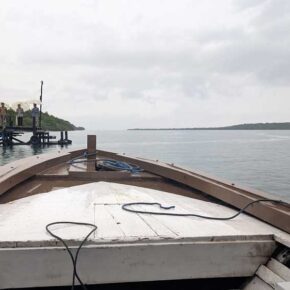 Weiter an’s Nordost- Ende der Insel. Mit weniger als 30 km/h Durchschnittsgeschwindigkeit (Mopeds, Autos, Trucks) können 100 km ganz schön lang sein, aber wir nähern uns der kleinen Fähre, die uns zum Nationalpark mit Resort bringt.
