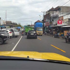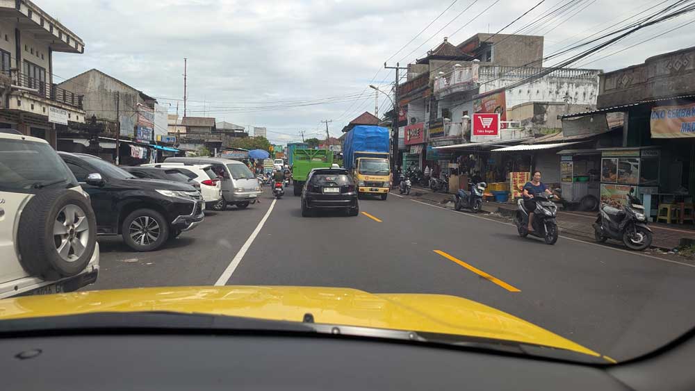 Unser beabsichtigter Ausflug nach Ubud endet im endlosen Stau von Mopeds und Autos ergebnislos und wir drehen um.