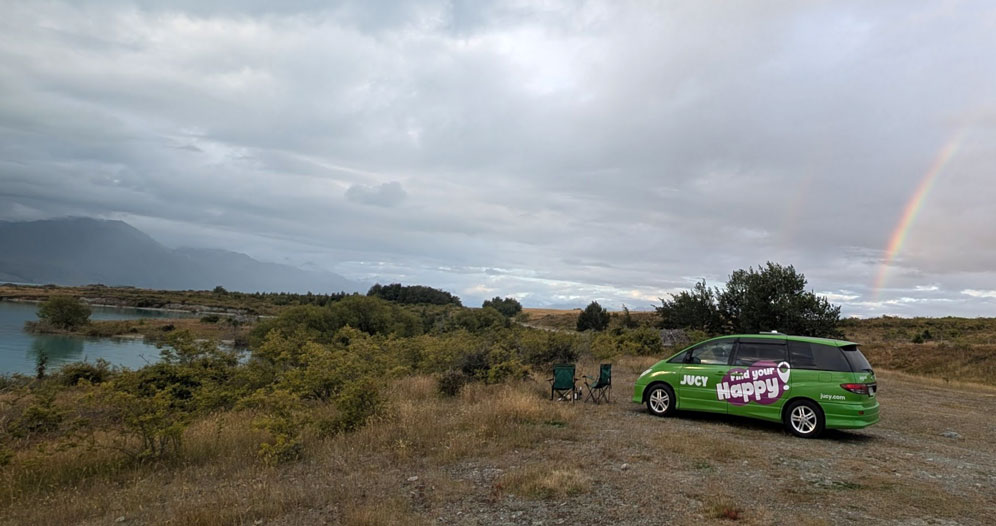Zum Lake Tekapo. An der Church of the Good Shepard auf einmal Touristenmassen. Am Ostufer finden wir dann ein einsames Plätzchen nur für uns.